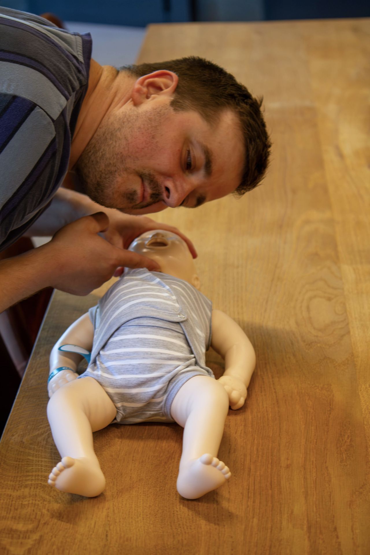 Onze lesgevers zijn spoedverpleegkundigen en ambulanciers met ervaring in pediatrische noodsituaties. Iedereen oefent zelf op een baby- en kinderreanimatiepop, zodat je het écht in de vingers krijgt.